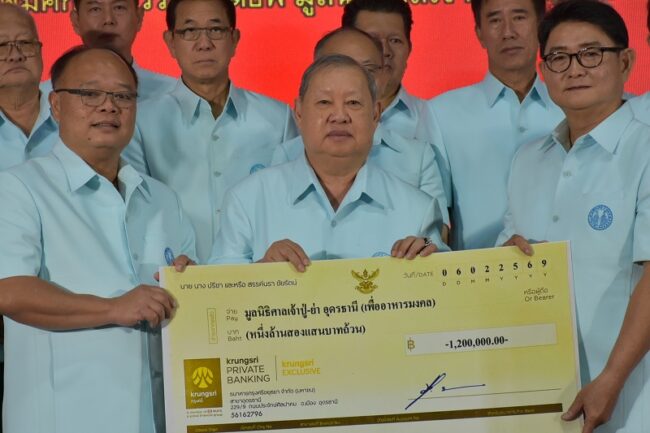 พร้อมด้วยอดีตประธานศาลเจ้าปู่-ย่า สมัยที่ผ่านมา รวมไปถึงบรรดาตัวแทนของตระกูลแซ่ในจังหวัดอุดรธานี ก็เดินทางมาร่วมเป็นเกียรติเป็นสักขีพยาน ซึ่งในการนี้นายปรีชา ชัยรัตน์ ประธานกิตติมศักดิ์ตลอดชีพมูลนิธิศาลเจ้าปู่-ย่า ได้มอบเงิน 1,200,000 บาท ในโครงการอาหารมงคลของมูลนิธิศาลเจ้าปู่-ย่า ให้กับนายชาญชัยธน ปุระประธานมูลนิธิศาลเจ้าปู่-ย่า สมัยปัจจุบันด้วย
