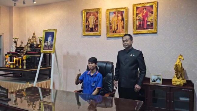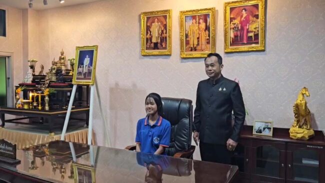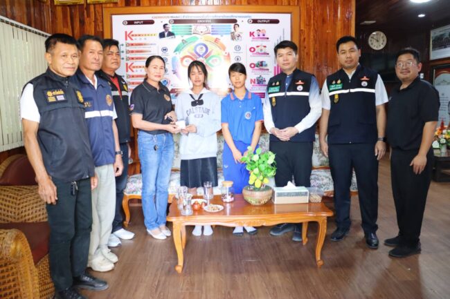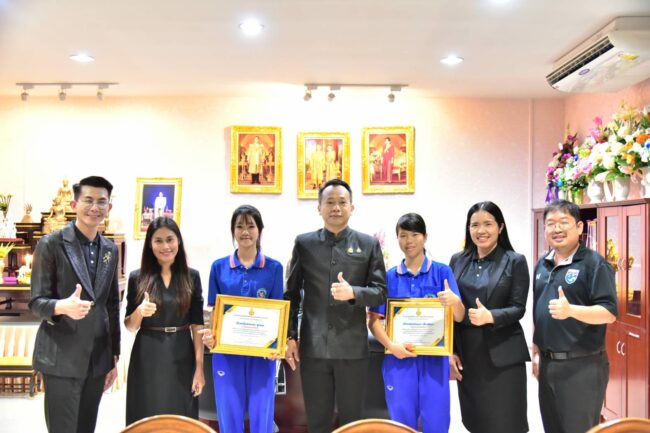 เมื่อวันที่ 18 กุมภาพันธ์ 2568 นายวันศักดิ์ คำแหง ผู้อำนวยการสำนักงานเขตพื้นที่การศึกษามัธยมศึกษาขอนแก่น (สพม.ขอนแก่น) ได้เชิญ เด็กหญิงอนัญญา เนื่องกันยา “น้องแพม” เด็กหญิงพัชรพร พูลผล “น้องเพลง” พร้อมด้วย คุณครูอธิปัตย์ ทักษะวรบุตร, คุณครูรณฤทธิ์ พิมพ์บึง, คุณครูลลนา สารผล และคุณครูจินตหรา ธรรมโม เดินทางเข้าพบที่สำนักงานเขตพื้นที่การศึกษามัธยมศึกษาขอนแก่น เพื่อมอบเกียรติบัตร และให้นักเรียนทั้ง 2 คน นั่งเก้าอี้ประจำตำแหน่ง ผอ.สพม.ขอนแก่น เพื่อเป็นการสร้างแรงบันดาลใจให้กับคนทำดีด้วย