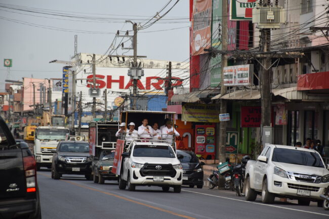 ก่อนขึ้นรถแห่ตระเวนขอบคุณทุกคะแนนเสียง กล่าวขอบคุณพ่อแม่พี่น้องชาวหนองบัวลำภู เขต 2 ว่าวันนี้รุ่งเพชร ศรีกาญจนา พร้อมทีมงานทุกคนในเขต 2 จะขึ้นรถตระเวนแห่ขอบคุณพ่อแม่พี่น้องที่ท่านได้ให้ความไว้วางใจ”รุ่งเพชร ศรีกาญจนา”ให้(หั้ย)มาเป็นผู้แทนราษฎรของของพ่อของแม่ของพี่น้องทุกคน รุ่งเพชรเคยให้คำมั่นสัญญากับคุณพ่อคุณแม่ว่าจะยืนเคียงข้างยามสุข ยามทุกข์ จะยืนไปด้วย(นำ)กัน รุ่งเพชรฯให้คำมั่นว่าจะทำ(เฮ็ด)ให้ดีที่สุดเท่าที่คนๆหนึ่งจะทำได้(เฮ็ดดั้ย)