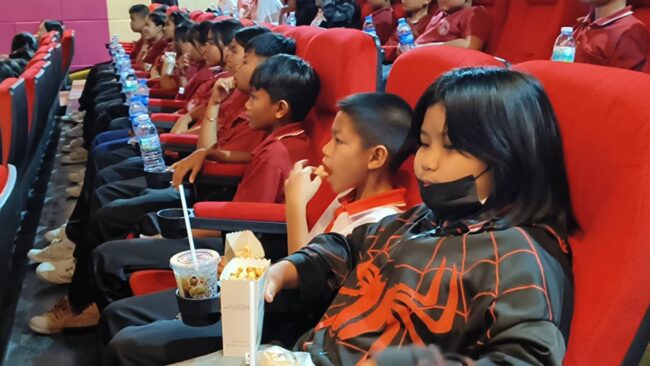 ทั้งนี้ก่อนเข้าโรงภาพยนตร์ คณะครูตำรวจแดร์ ได้เป็นวิทยากรให้ความรู้แก่เด็กนักเรียนเกี่ยวกับประวัติศาสตร์ชาติไทย ปลูกฝังจิตสำนึกเทิดทูนสถาบัน ชาติ ศาสนา พระมหากษัตริย์ ให้ความรู้ต้านยาเสพติด สร้างภูมิคุ้มกันภัยออนไลน์ รู้ทันภัยทางเทคโนโลยี และก่อนชมภาพยนตร์ คณะครู นักเรียน และผู้เข้าชมภาพยนตร์ทุกคนต่างพร้อมใจยืนถวายความเคารพเพลงสรรเสริญพระบารมีในโรงภาพยนตร์อย่างพร้อมเพียงอีกด้วย.