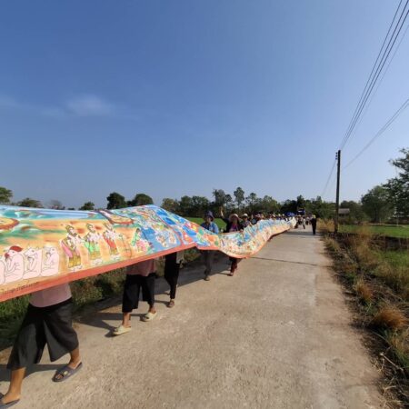 วันที่ 22 กุมภาพันธ์ 2569 ที่วัดโพธิ์ชัยบ้านตูม หมู่ 4 และหมู่ 19 ต.บัวบาน อ.ยางตลาด จ.กาฬสินธุ์ พระครูโพธิชยานุโยค เจ้าคณะตำบลบัวบาน เขต 1 พร้อมด้วยนางพัชราวลัย ไร่ไสว ผู้ใหญ่บ้านตูม หมู่ 4 นายณัฐวัฒน์ ภูนาสูง ผู้ใหญ่บ้านตูม หมู่ 19 ร่วมกับคณะสงฆ์ ผู้นำชุมชน คณะกรรมการหมู่บ้าน ร่วมกันจัดงานบุญผะเหวด ฟังเทศน์มหาชาติ หรือบุญมหาชาติ หรือบุญเดือน 4 โดยมีพี่น้องประชาชนชาวพุทธ ในพื้นที่ ต.บัวบานและใกล้เคียง ร่วมทำบุญโดยบริจาคปัจจัย จัดต้นดอกเงินถวายวัด และมีการ “จกกัณฑ์” (ภาษาอีสาน ความหมาย จับสลากกัณฑ์เทศน์มหาชาติ) เพื่อเสี่ยงทายดวงชะตาราศีในรอบปี ตามคติความเชื่อ