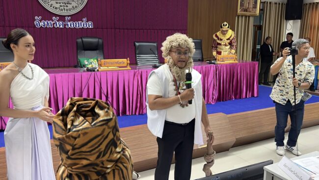 เมื่อเวลา 09.00 น. วันที่ 26 กุมภาพันธ์ 2569 ที่ห้องประชุมชั้น 5 ศาลากลางจังหวัดร้อยเอ็ด บรรยากาศคึกคักตั้งแต่หน้าห้องประชุม เมื่อ นายชัชวาล เบญจศิริวงศ์ ผู้ว่าราชการจังหวัดร้อยเอ็ด สลัดมาดผู้บริหาร สวมบท “ชูชก” ตัวละครสำคัญจากเรื่อง เวสสันดรชาดก เข้าร่วมประชุมอย่างเป็นกันเอง สร้างรอยยิ้มให้ผู้เข้าร่วมประชุมอย่างทั่วถึง
