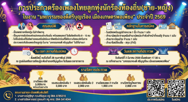นายธนายุทธ นายอำเภอศรีบุญเรือง ขอถือโอกาสนี้เชิญชวนชาวอำเภอศรีบุญเรือง ร่วมรำบวงสรวงด้วยพลังศรัทธาศาลหลักเมือง (ปู่ตาแสง)ในวันที่ 1 มีนาคม 69 เริ่ม 07.00 น.เป็นต้นไป โดยในการรำบวงสรวงปีนี้คาดว่าไม่ต่ำกว่า 2.5 พันคน โดยมีนายสุรศักดิ์ อักษรกุล ผู้ว่าราชการจังหวัดหนองบัวลำภู เป็นประธานในพิธีเปิดงานตั้งแต่เช้า พิเศษสุดปีนี้ผู้ว่าราชการจังหวัดหนองบัวลำภู มอบหมายให้สำนักงานปศุสัตว์จังหวัดหนองบัวลำภู สำนักงานเกษตรจังหวัดหนองบัวลำภู องค์การบริหารส่วนจังหวัดหนองบัวลำภู ร่วมจัดกิจกรรมการประกวดควายสวยงาม ซึ่งจะมีควายทุกภาคเข้ามาร่วมประกวด นอกจากนั้นยังมีการจัดแสดงและจำหน่ายสินค้าเกษตรปลอดภัยและสินค้าชุมชน และที่สำคัญครับเราได้รับการสนับสนุนงบประมาณจากองค์กรปกครองส่วนท้องถิ่น ทั้ง 14 แห่งในการกรุณาการในการจัดกิจกรรม