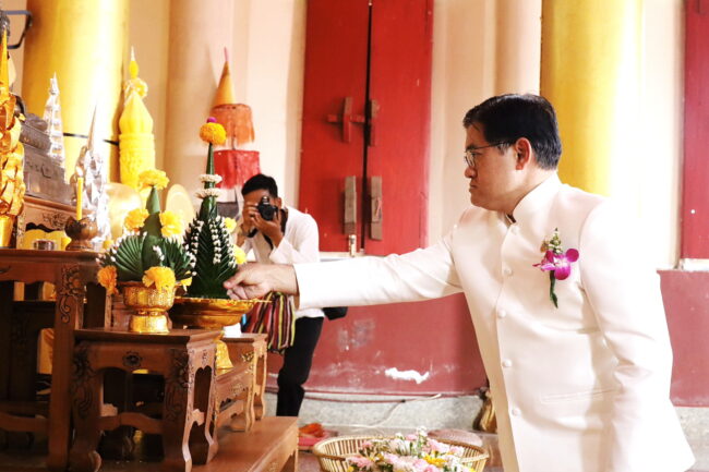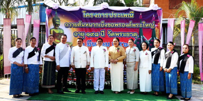 พ่อเมืองเลย สืบสานประเพณี “ถวายต้นหมากเบ็ง” สักการะองค์พระใหญ่ 198 ปี วัดพระธาตุ บ้านธาตุ อำเภอเชียงคาน