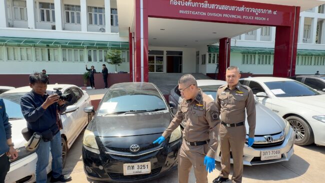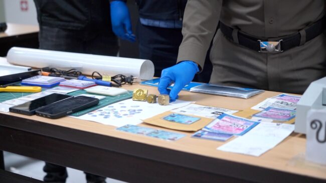 12 มี.ค. 69 พล.ต.ท.สันติ ชัยนิรามัย ผู้บัญชาการตำรวจภูธรภาค 4 พล.ต.ต.นพเก้า โสมนัส รองผู้บัญชาการตำรวจภูธรภาค 4 พล.ต.ต.ภูมิพัฒน์ ภัทรศรีวงษ์ชัย ผู้บังคับการตำรวจสืบสวนสอบสวน ตำรวจภูธรภาค 4 เข้าตรวจสอบของกลางจำนวนมาก เช่น ตราปั๊มทองเหลืองหน่วยงานราชการ คอมพิวเตอร์และเครื่องปริ้น จำนวน 1 จุด อุปกรณ์และเครื่องที่ใช้ในการผลิตเอกสารปลอม จำนวน 1 ชุด ป้ายภาษี บัตรประชาชน และใบขับขี่ปลอม จำนวน 6 ใบ พร้อมรถยนต์พร้อมเอกสารปลอมจำนวน10 คัน โทรศัพท์มือถือจำนวน 4 เครื่อง หลังจากตำรวจสืบสวนสอบสวน ตำรวจภูธรภาค 4 ได้ตรวจยึดเป็นหลักฐาน พร้อมผู้ต้องหาจำนวน 2 คน คือนายอนันต์ (ขอสงวนนามสกุล) อายุ 40 ปี ชาวจังหวัดสมุทรปราการ และนางสาวอรรฉราพรรณ (ขอสงวนนามสกุล) อายุ 30 ปี ชาวจังหวัดขอนแก่น