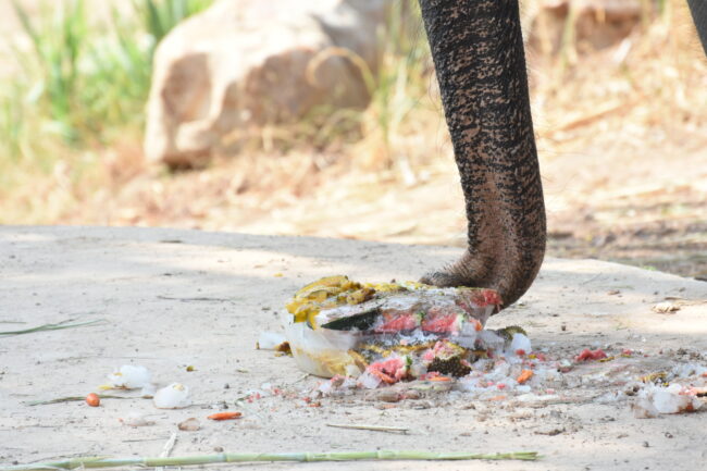 โดยกิจกรรมในครั้งนี้ สวนสัตว์ขอนแก่นได้มอบหมายให้ผู้บริหาร และเจ้าหน้าที่ร่วมกันจัดเตรียม อาหารแช่แข็งขนาดใหญ่ จากผักและผลไม้ที่เป็นอาหารโปรดของช้างไทย ได้แก่ ฟักทอง แครอท แตงโม สับปะรด และขนุน นำมาแช่แข็งเป็นก้อนน้ำแข็งขนาดใหญ่ เพื่อมอบให้กับ “พังปุ๊ก” และ “พังจิ๋ม” โดยกิจกรรมดังกล่าวนอกจากจะช่วยให้ช้างได้คลายร้อนในช่วงอากาศร้อนแล้ว ยังเป็นการส่งเสริมพฤติกรรมตามธรรมชาติของสัตว์ (Animal Enrichment) ช่วยลดความเครียด และกระตุ้นให้ช้างได้ใช้ทักษะตามธรรมชาติในการหาอาหาร