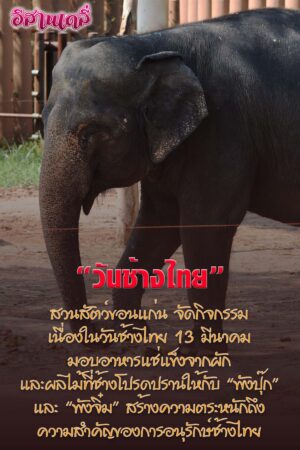 เมื่อวันที่ 13 มีนาคม 2569 ที่สวนสัตว์ขอนแก่น ต.คำม่วง อ.เขาสวนกวาง จ.ขอนแก่น นางทิพาวดี กิตติคุณ ผู้อำนวยการสวนสัตว์ขอนแก่น กล่าวว่า เนื่องในโอกาส วันช้างไทย ซึ่งตรงกับวันที่ 13 มีนาคมของทุกปี สวนสัตว์ขอนแก่น ได้จัดกิจกรรมพิเศษเพื่อรำลึกถึงความสำคัญของช้างไทย ซึ่งถือเป็นสัตว์คู่บ้านคู่เมืองของประเทศไทยมาอย่างยาวนาน และเป็นสัตว์ที่มีบทบาทสำคัญทั้งในด้านประวัติศาสตร์ วัฒนธรรม และวิถีชีวิตของคนไทย ปัจจุบันสวนสัตว์ขอนแก่นมีช้างไทยจำนวน 2 เชือก ได้แก่ พังปุ๊ก อายุ 43 ปี และพังจิ๋ม อายุ 45 ปี ซึ่งเป็นช้างเพศเมียที่อยู่ภายใต้การดูแลของทีมสัตวแพทย์และเจ้าหน้าที่ผู้ดูแลสัตว์อย่างใกล้ชิด ทั้งในด้านโภชนาการ สุขภาพ และการจัดสภาพแวดล้อมที่เหมาะสมต่อการดำรงชีวิต