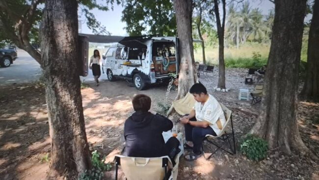 วันที่ 3 เม.ย.69 เวลา 09.00 น ที่บริเวณสวนป่า หลังไปรษณีย์โนนศรีสวัสดิ์ อ.เมือง จ.มหาสารคาม นายอดิศร อ่อนมา อายุ 30 ปี เจ้าของร้าน ปู่ตู้ คอฟฟี่ มหาสารคาม กล่าวว่า ราคาน้ำมันที่มีปรับราคาเพิ่มสูงขึ้น ทำให้ทางร้านต้องมีการปรับตัว คือต้องหาจุดจอดรถให้ใกล้กับบริเวณที่พัก เพื่อย่นระยะทางให้สั้นลง จะได้ประหยัดน้ำมัน และในขณะเดินทางก็ไม่ขับรถเร็ว เพื่อให้รอบรถไม่สูง โดยได้จัดหาจุดจอดที่เป็นร่มไม้ อากาศถ่ายเทได้สะดวก นำผ้าใบกันแดดมาผูกไว้ระหว่างต้นไม้ เพื่อเป็นร่มให้กับลูกค้า ในสมัยก่อนรถตู้คันนี้ จะเดินท่องเที่ยวไปเรื่อย ๆ แต่ช่วงปีหลัง ๆ ด้วยสภาพรถก็เก่า ก็เลยนำรถตู้มาสร้างอาชีพ เวลาจะเดินทางท่องเที่ยวก็อาศัยเป็นรถโดยสารสาธารณะ ซึ่งตอนนี้รถตู้คันนี้ ก็ได้มาขายเครื่องดื่ม ชา กาแฟ รวมถึงเมนูโซดา ราคาเริ่มต้นอยู่ที่ 40-45 บาท ลูกค้าส่วนใหญ่ก็ทยอยมาทั้งวัน เมื่อสั่งเครื่องดื่มแล้ว ก็จะไปนั่งตามจุดใต้ร่มไม้ ไถฟีด ฟังเพลง นั่งชิลได้ โดยทุกวันนี้ส่วนใหญ่จะจอดรถอยู่ที่บริเวณสวนป่า หลังไปรษณีย์โนนศรีสวัสดิ์ อ.เมือง จ.มหาสารคาม
