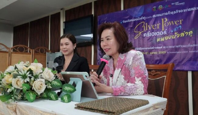 เมื่อเร็วๆนี้ ณ ห้องประชุมชวนพิศ โรงแรมณัฐพงศ์แกรนด์ จังหวัดหนองบัวลำภู โดยสำนักงานพัฒนาชุมชนจังหวัดหนองบัวลำภู จับมือกับสมาคมการค้าธุรกิจอาหารและการท่องเที่ยวไทย จัดโครงการอบรมโครงการ Silver Power ครีเอเตอร์วัยเก๋า หนองบัวลำภู พลิกโฉมเศรษฐกิจไทย” มุ่งยกระดับศักยภาพผู้สูงอายุและคนวัยเกษียณ สู่การเป็นนักเล่าเรื่องยุคดิจิทัล มีผู้เข้าร่วมจากหลากหลายพื้นที่ ทั้งในส่วนกลางและภูมิภาค รวมถึงผู้เข้าร่วมจากต่างประเทศ อาทิ สาธารณรัฐประชาธิปไตยประชาชนลาว และ ญี่ปุ่น ร่วม 60 คน