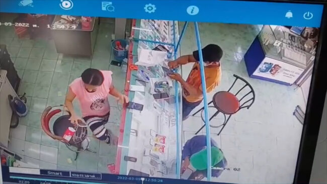 วงจรปิดบันทึกภาพมิจฉาชีพทำทีเข้าไปซื้อโทรศัพท์ในร้าน สอบถามราคา ตกลงจะซื้อยืดเยื้อเวลาอ้าง…