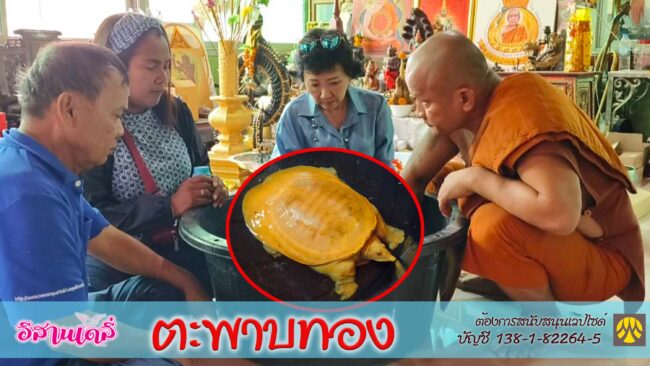ศรีสะเกษ (ชมคลิป) ชาวบ้านฮือฮาแห่ขอหวยตะพาบน้ำสีทอง สุดแปลกเหลืองอร่ามทั้งตัว