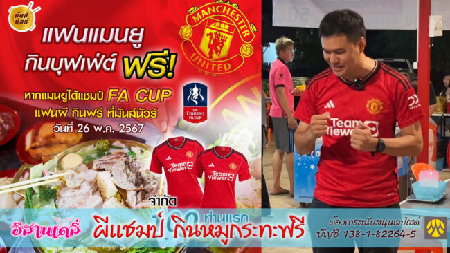 ร้านหมูกระทะเตรียมให้ลูกค้ากินฟรี หากในค่ำคืนวันเสาร์ สโมสรแมนเชสเตอร์ยูไนเต็ด สามารถคว้าแ…