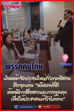 Read Moreมหาสารคาม – เดินหน้าจัดประชุมใหญ่ทั่วภาคอีสาน ดึงจุดเด่น “นโยบายที่ดีต้องมีการสื่อสารและการพูดคุยเพื่อให้ประชาชนเข้าใจได้ง่าย”