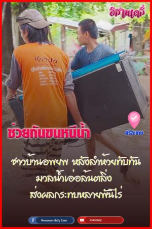 ศรีสะเกษ – ชาวบ้านแห่อพยพ หลังลำห้วยทับทัน เอ่อล้นตลิ่ง พื้นที่ได้รับผลกระทบหลายพันไร่