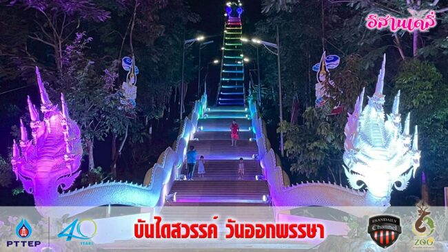 วัดพุทธาวาสภูสิงห์ ประดับไฟบันไดสวรรค์ 654 ขั้น หรือราว 1.5 กม. พร้อมไฟสวยงามบนลานธรรม มรร…