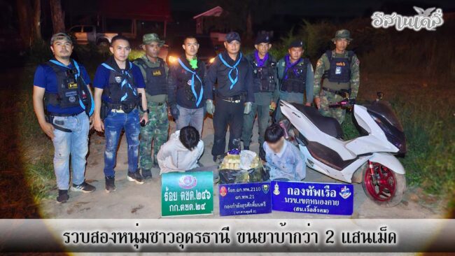 ทพ.2110 ทพ.21 รวบสองหนุ่มชาวอุดรธานี ขนยาบ้ากว่า 2 แสนเม็ด ที่ลักลอบนำเข้าจากประเทศเพื่อนบ…