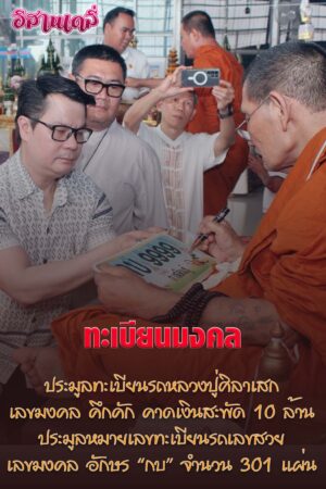 ประมูลหมายเลขทะเบียนรถ เลขสวย เลขมงคล อักษร “กบ” หลวงปู่ศิลา สิริจันโท เสก 301 แผ่นสุดคึกค…